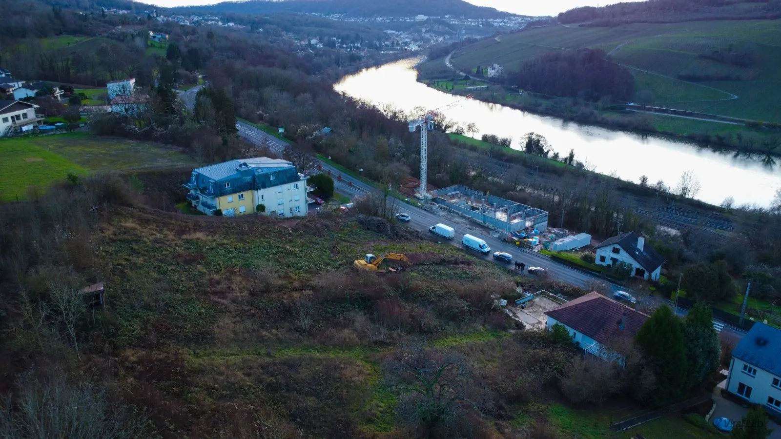 Vue aérienne de la vallée de la Moselle près d’Apach